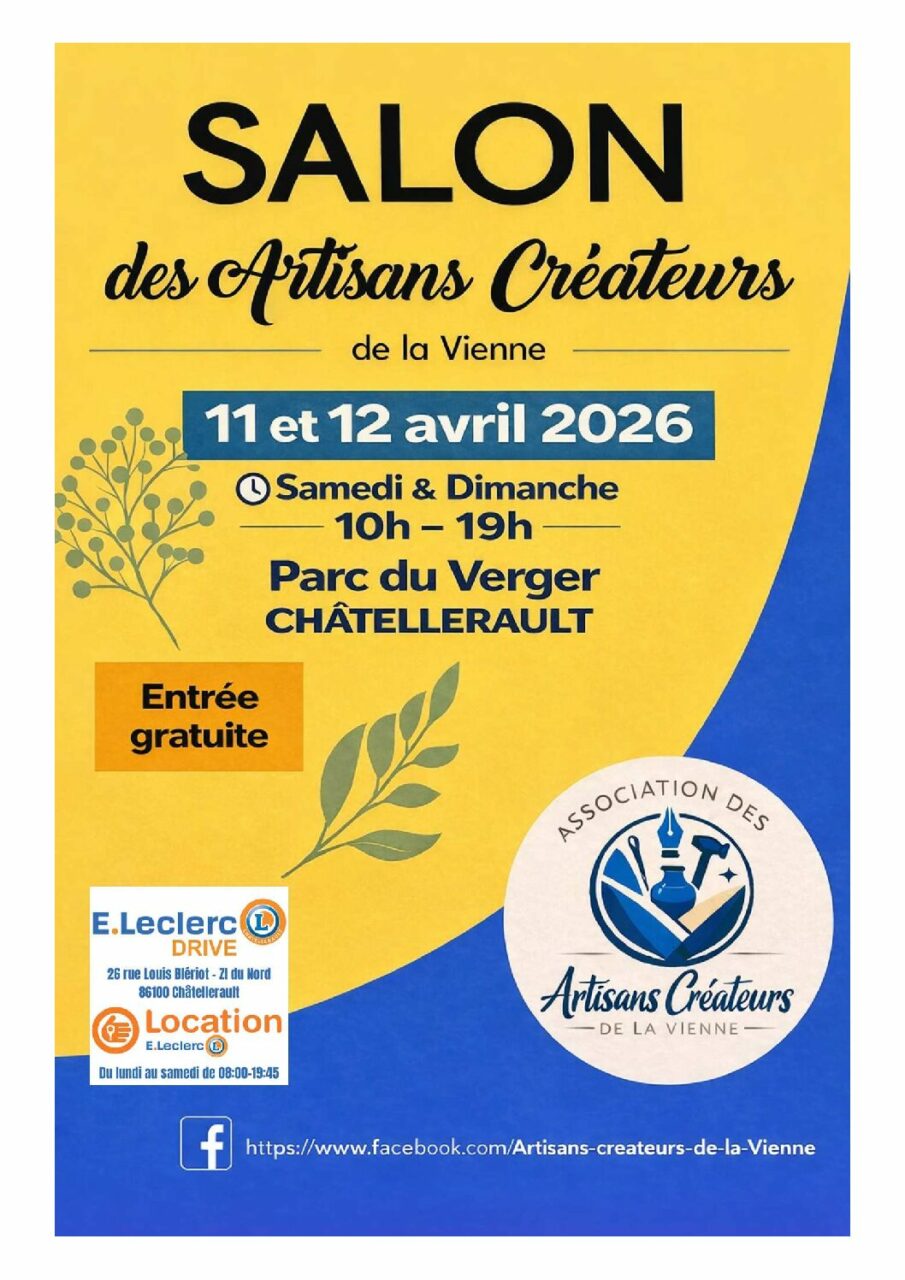 Catégories 🗓️ ÉvènementSalon Des Artisans Créateurs de La Vienne Le 11 et 12 avril 2026 Salon Des Artisans Créateurs de La Vienne Le 11 et 12 avril 2026 Date de l’article 8 avril 2026